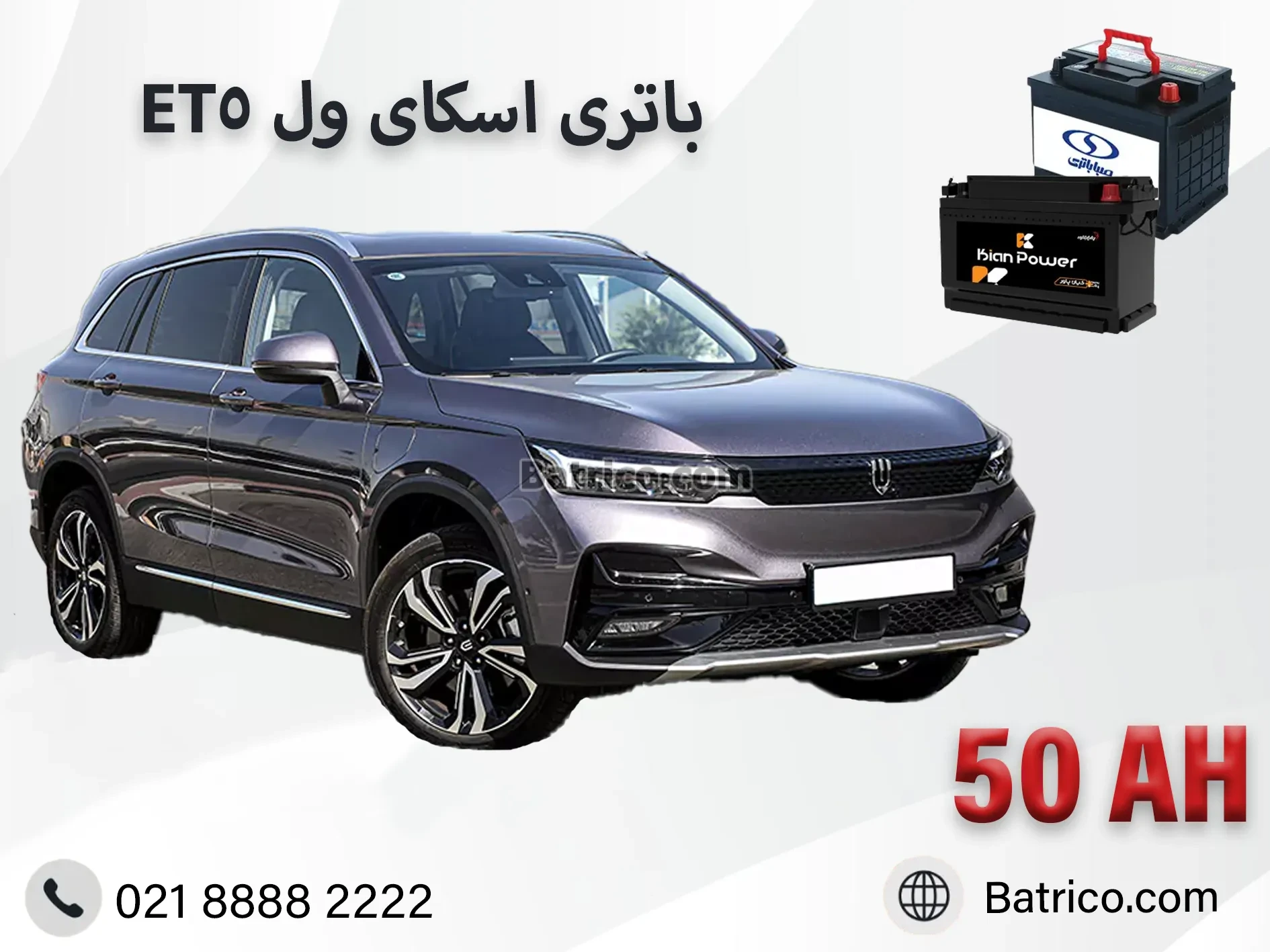جواب : باتری ماشین شما 50 آمپر می باشد، شما می توانید از باتری های با کیفیت خوب تا 50 آمپر استفاده کنید. باتری های سایز بالاتر روی خودروی اسکای ول ET5 قابل نصب نیست.