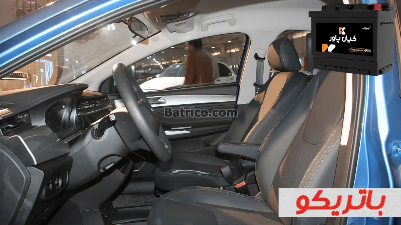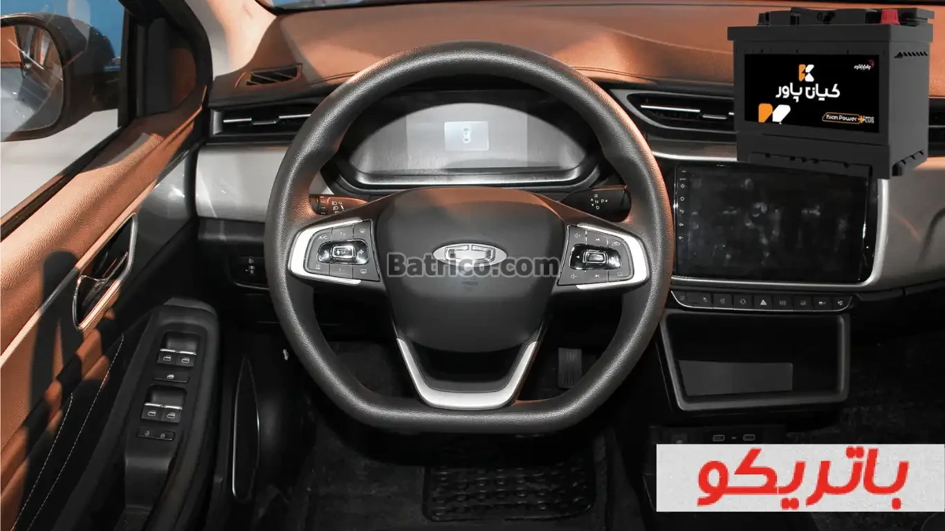باتری این خودرو در محفظه موتور، در سمت راننده قرار دارد. این طراحی به گونهای است که دسترسی به باتری برای بررسی یا تعویض آن آسان باشد. هنگام تعویض باتری، توصیه میشود از کارشناسان حرفهای کمک بگیرید تا از نصب صحیح و ایمن باتری اطمینان حاصل شود.
