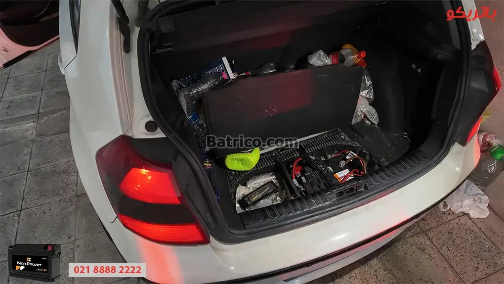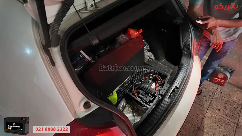 - محل قرارگیری باتری: زیر کفی صندوق عقب خودرو